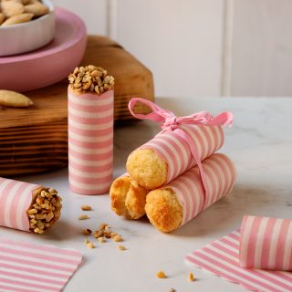 Cartine in carta da forno, con bordo ondulato, perfette per avvolgere il classico dolce della tradizione italiana , le cartucce “CARTU”, da vestire con un originale incarto. Da utilizzare con lo stampo per Cartucce Cartù.