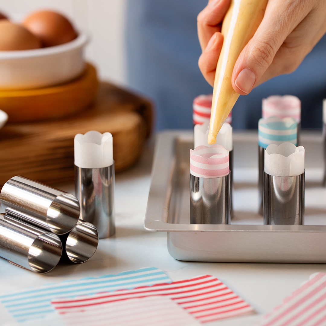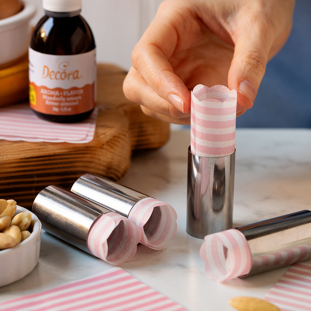 Cartine in carta da forno, con bordo ondulato, perfette per avvolgere il classico dolce della tradizione italiana , le cartucce “CARTU”, da vestire con un originale incarto. Da utilizzare con lo stampo per Cartucce Cartù.